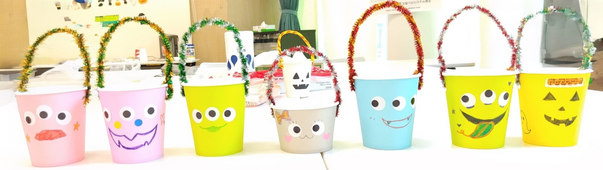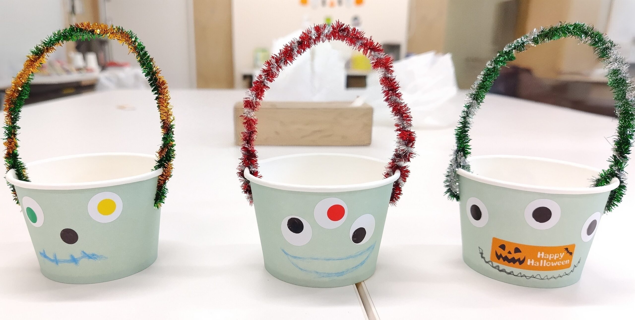 | 制作 | 紙コップを使ったtrick or treat用のお菓子の入れ物作り |