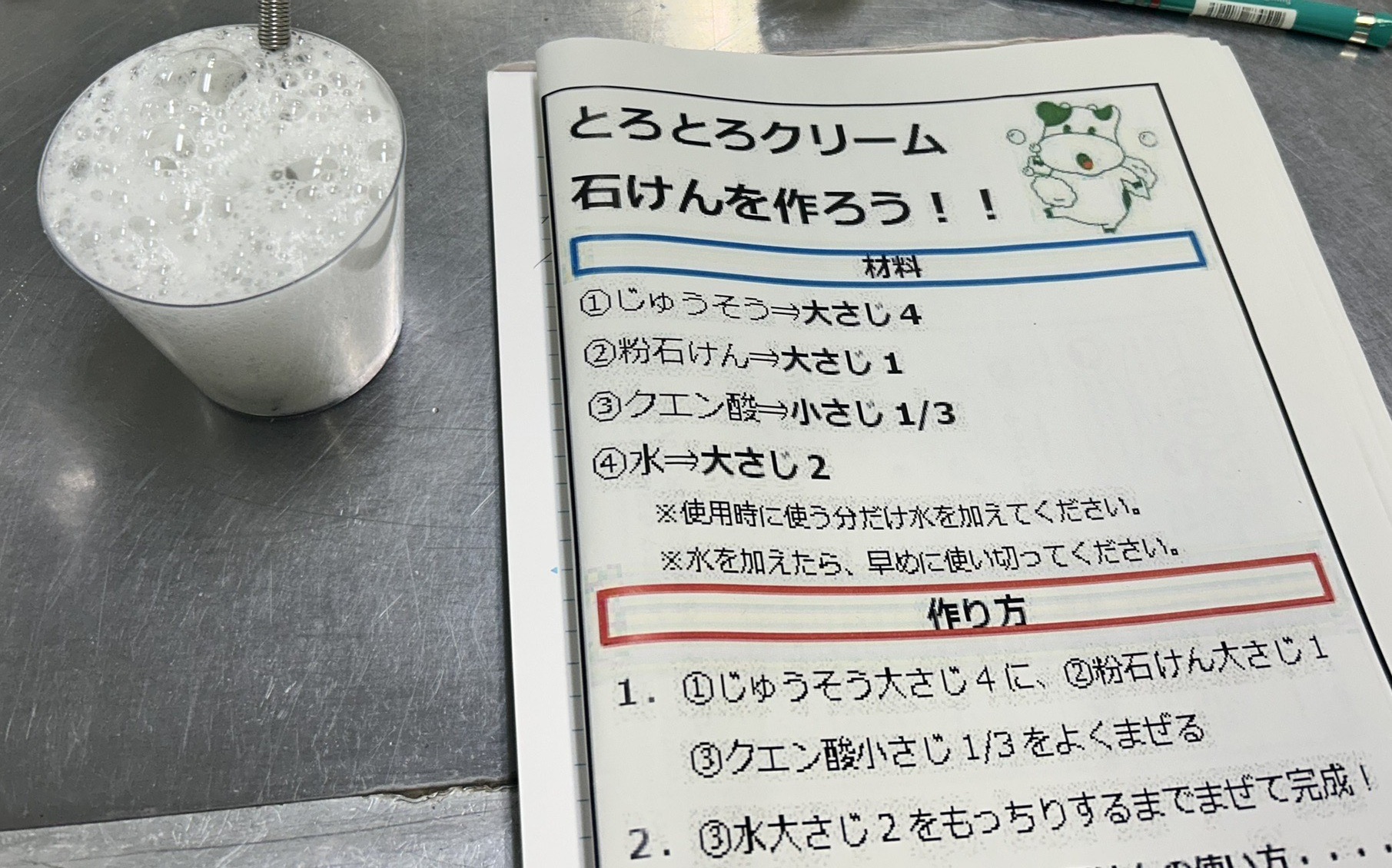 PLA(パルシステム・ライフアシスタント)※ を迎え、石けんについて学習しました。洗剤との違いや効果的な使い方を教えていただきました。