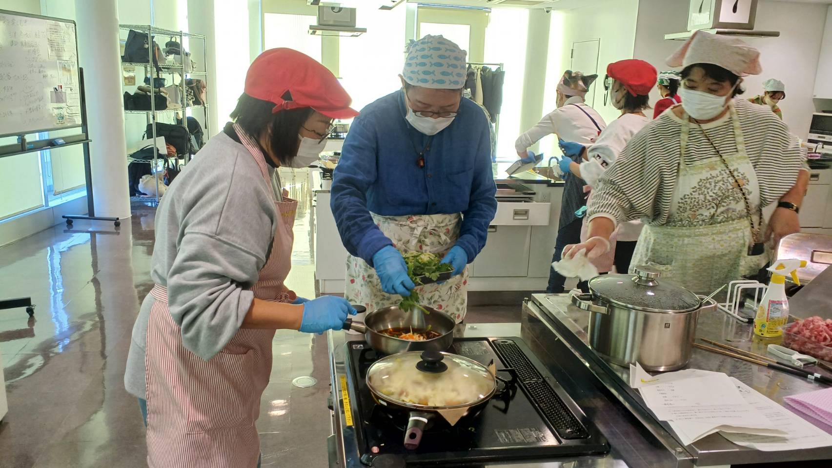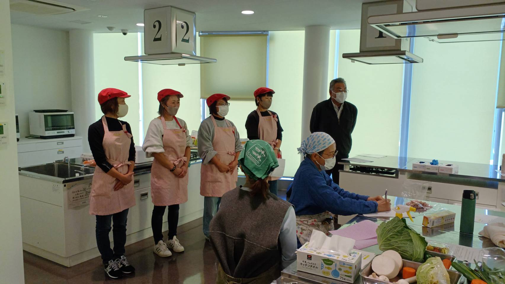 「生産者と一緒に産直野菜を楽しむぞ!」を開催 2025年12月9日 11月26日(水)、ぱる★てらすで千葉県産地 村悟空さんを招き「生産者と一緒に産直野菜を楽しむぞ!」を開催しました。 レシピ「キャベツピザ風味」「もうたまらん丼」「村悟空の野菜スープ」の3品を作りました。新鮮な野菜を使ってたくさん食べられるレシピが参加者にもとても好評でした。 産直の村悟空さんの紹介プリントをいただき、学びました。 主催:食べて知ろう!産直テーマグループ