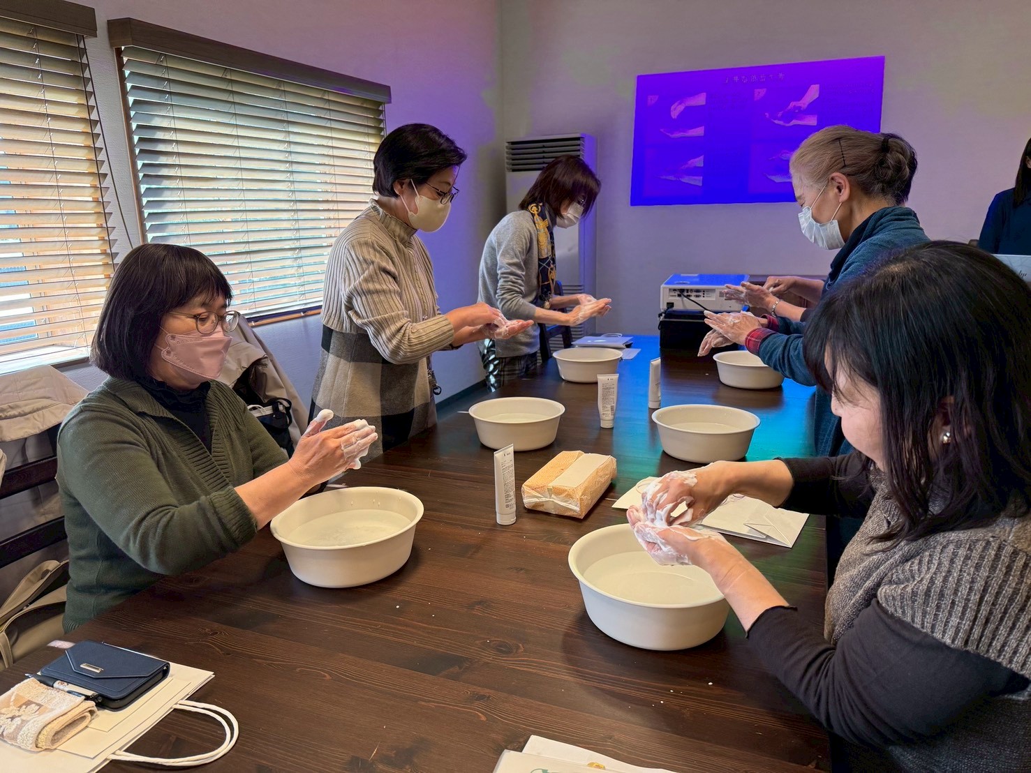 工場見学では大きな釜で焚いている石けんを間近で見させていただき感動しました。化粧品の基礎知識も学び洗顔石けんの泡立て方を実際にやってみたりと楽しいひと時を過ごしました。ものづくりの丁寧さ、こだわりなど知ることができて、これからも利用していきたいと思いました。
