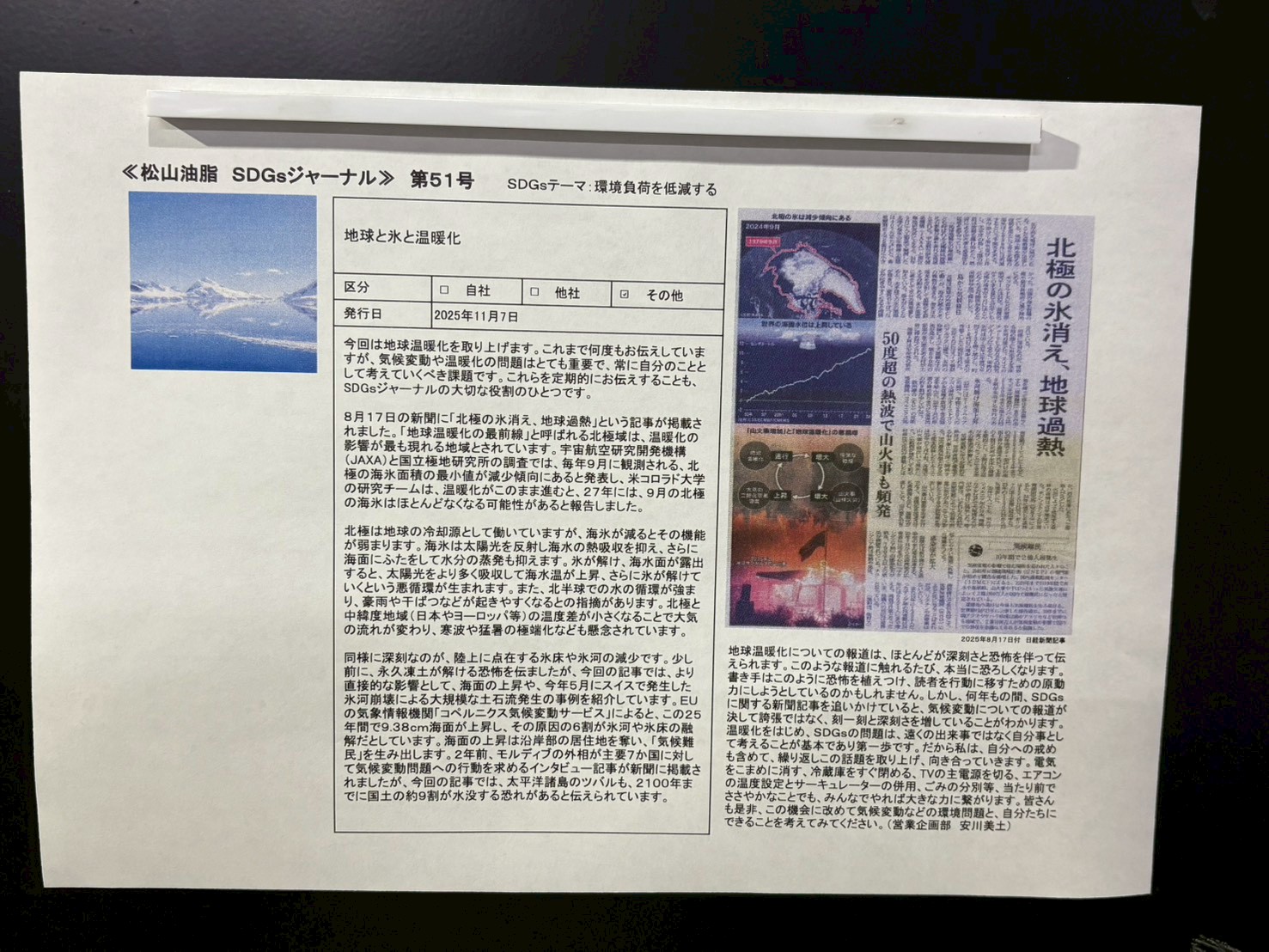 また、SDGsの取り組みが掲示されていて、会社全体で熱心に取り組まれていることに感心しました。工場の皆様、ありがとうございました!