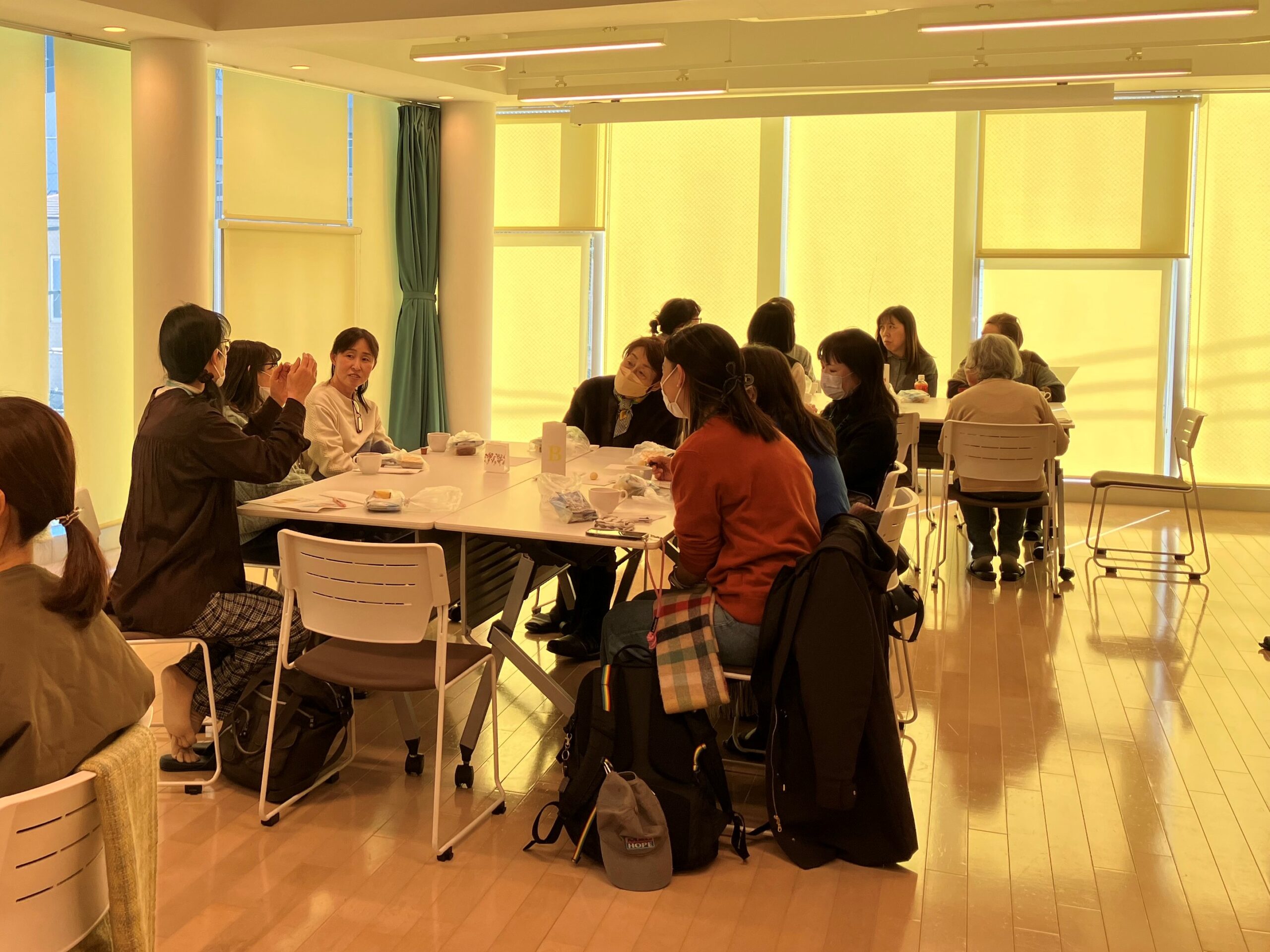 コーヒーでリラックスした後の「応援者交流会」は、普段顔を合わせることのない応援者同士やコーディネーターとつながる場として年に一度開催しています。活動している方に様子をお聞きしたり、「活動して良かったこと」「やってみたいこと」 「苦手な活動への工夫について」「夏の活動について」などをテーマに意見を交換し、交流を深めました。