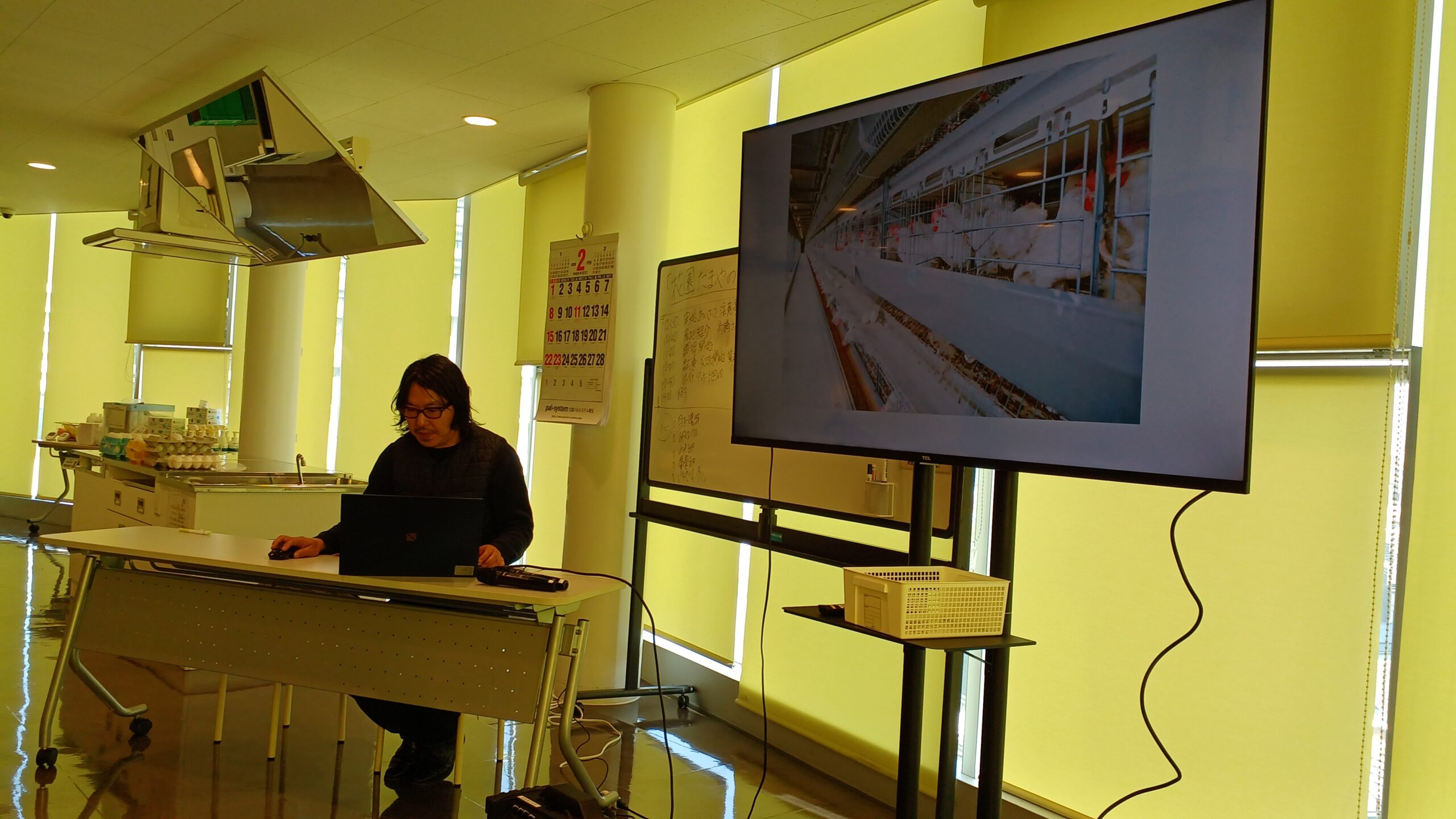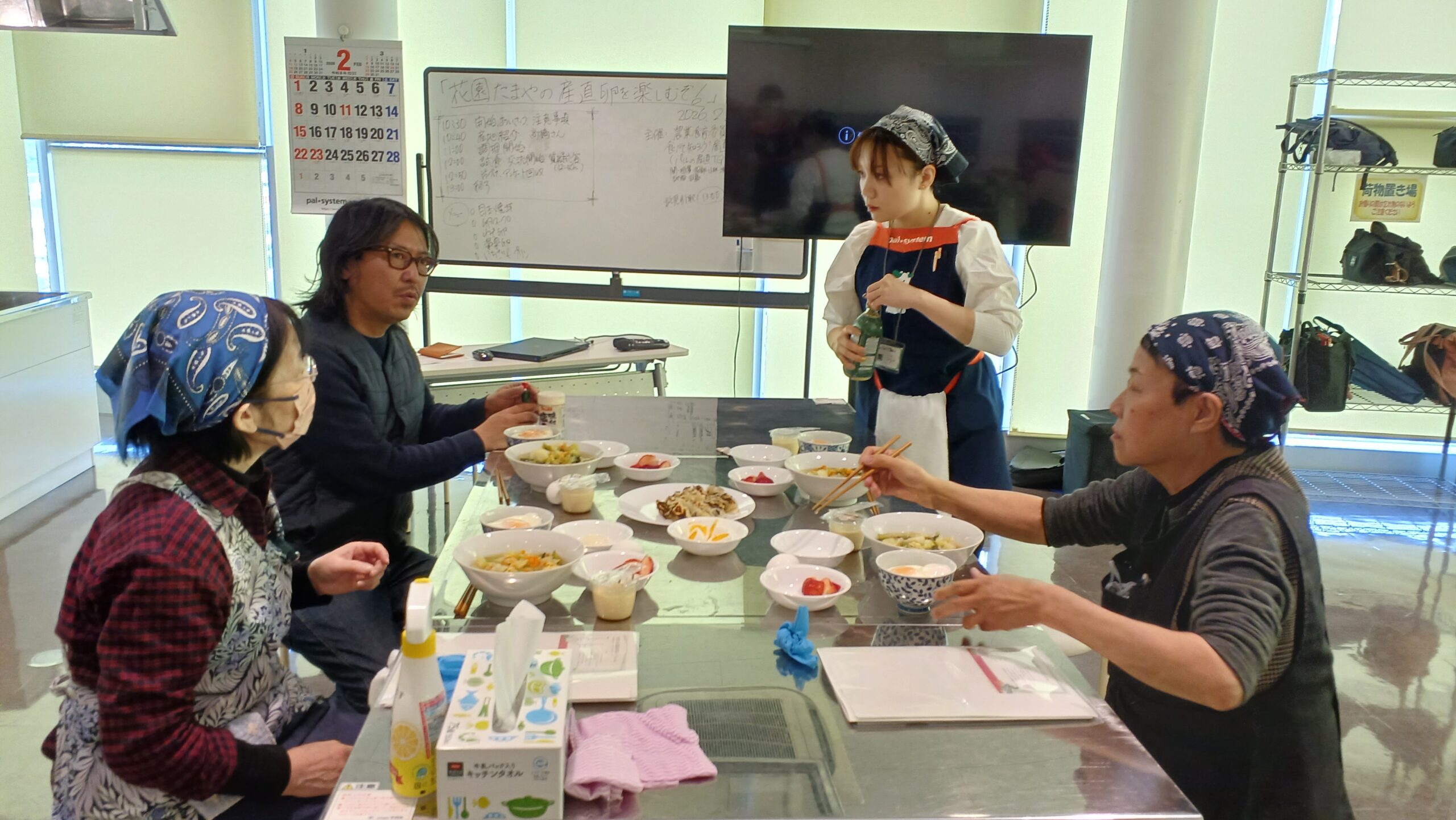 2月16日(月)、ぱる★てらすにて「花園たまやの『産直たまご』を楽しむぞ!」を開催いたしました。今回は、埼玉県深谷市にある「株式会社花園たまや」の生産者である代表取締役 高橋さんをお迎えし、学習会と調理実習を行いました。