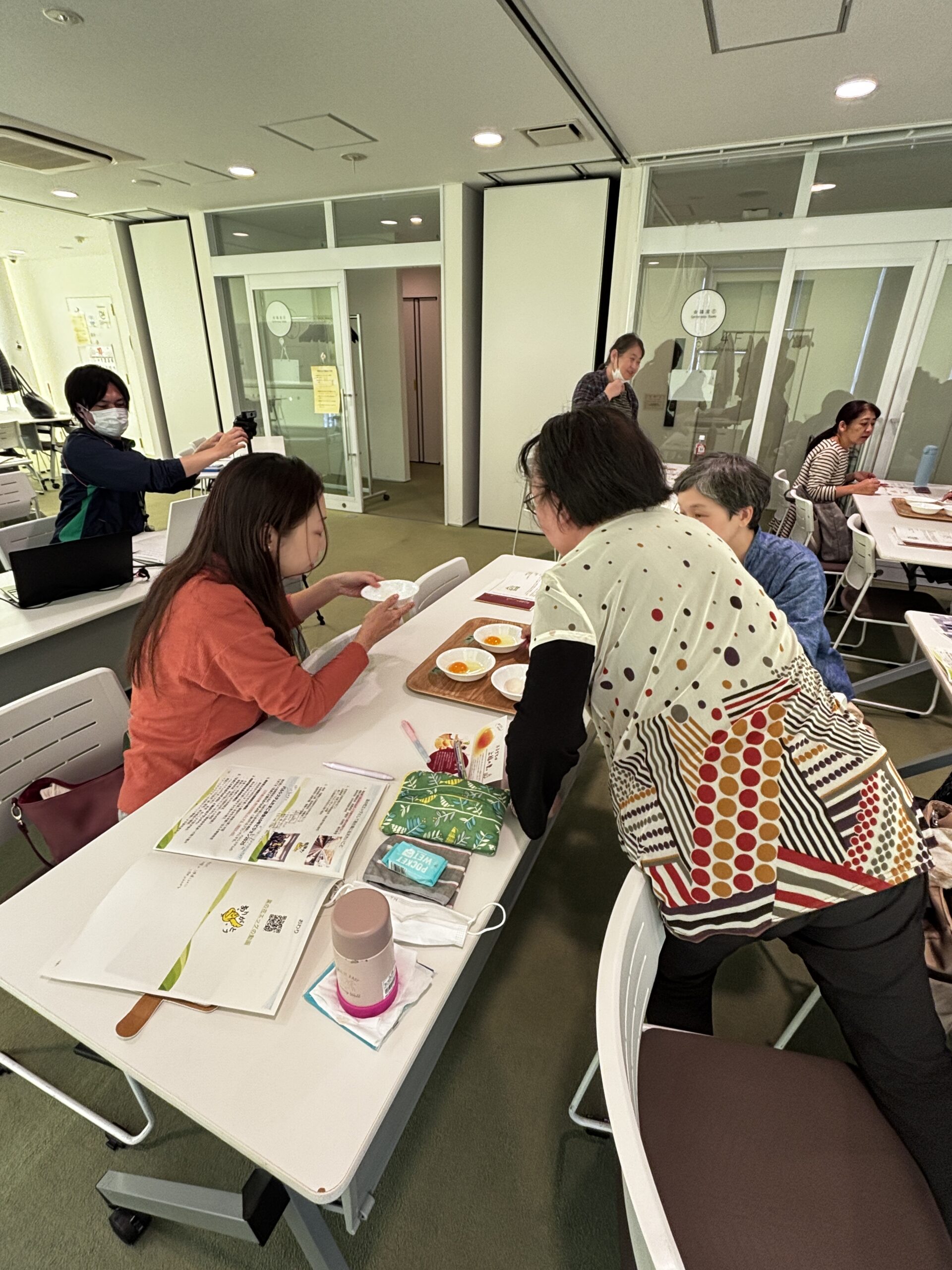 講座の後半では、実際に菜の花エッグのたまごを試食し、その美味しさを実感。続く質疑応答では、参加者から次々と質問が寄せられました。