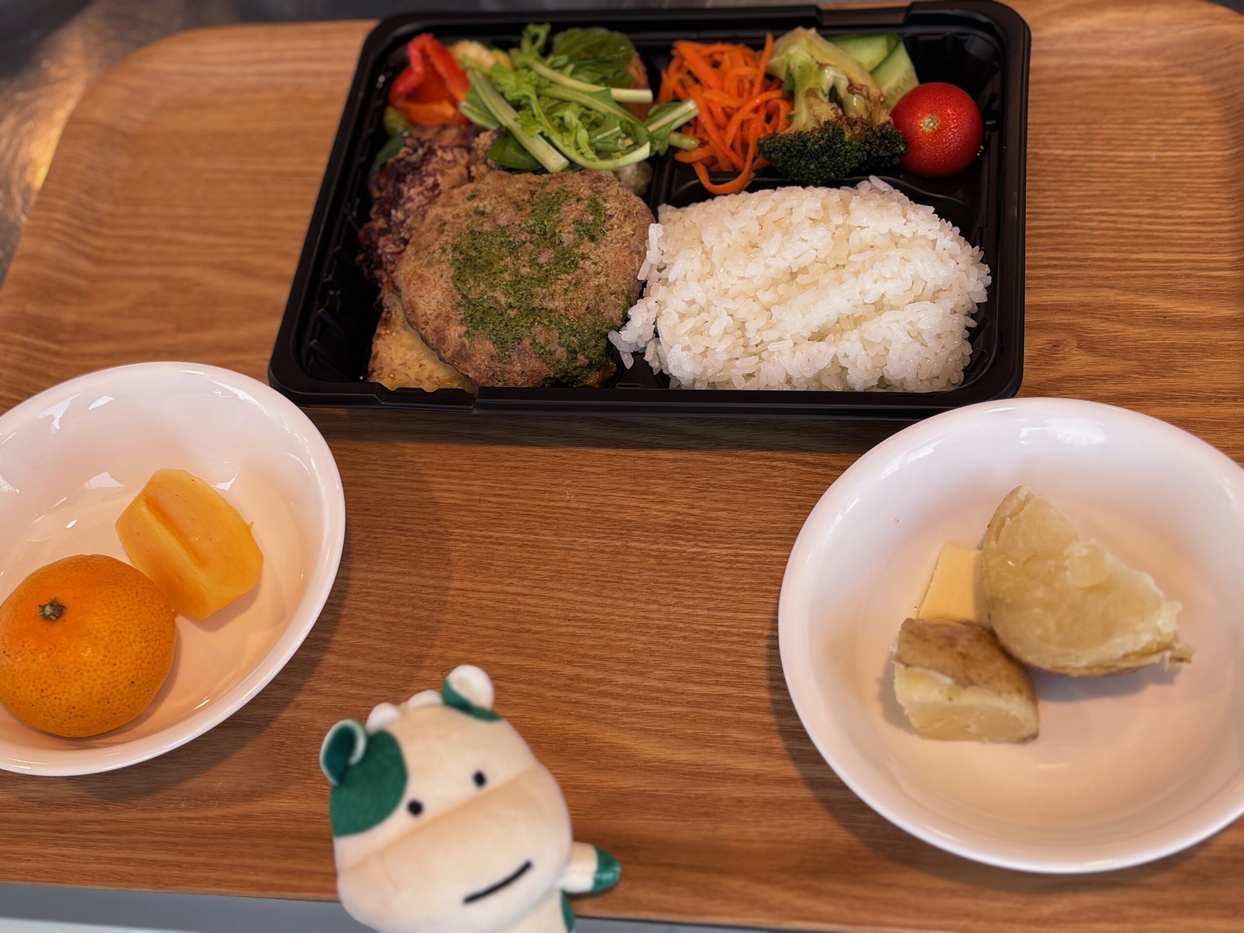 後半は、調理室に会場を移し昼食交流会を開催。グループごとに分かれて参加者は和気あいあいと楽しく交流を深めることができました。交流会のメニューでは、お弁当(野菜:沃土会 会津こしひかり:JA会津よつば)、じゃがいも(マルタ)、おけさ柿(JA新潟かがやき)、温州みかん(無茶々園)の提供がありました。とてもボリューム感があり、どの食材もたいへん美味しく好評の声が飛び交いました。