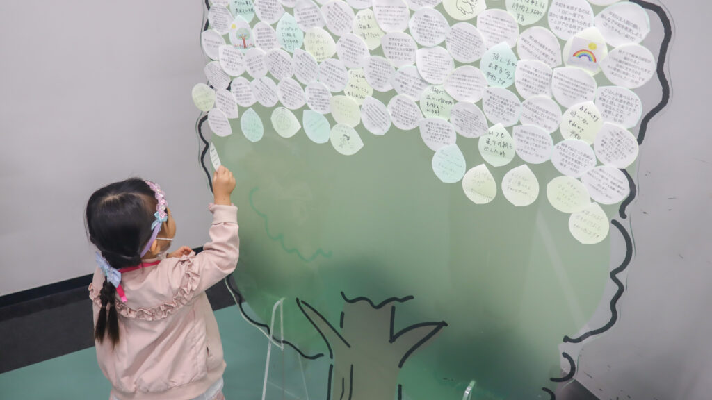 ブースでは、これまでの平和活動の紹介とともに、ご来場いただいたみなさんに「平和への願い」を込めたメッセージを募集し、数多くの温かいメッセージが寄せられました。