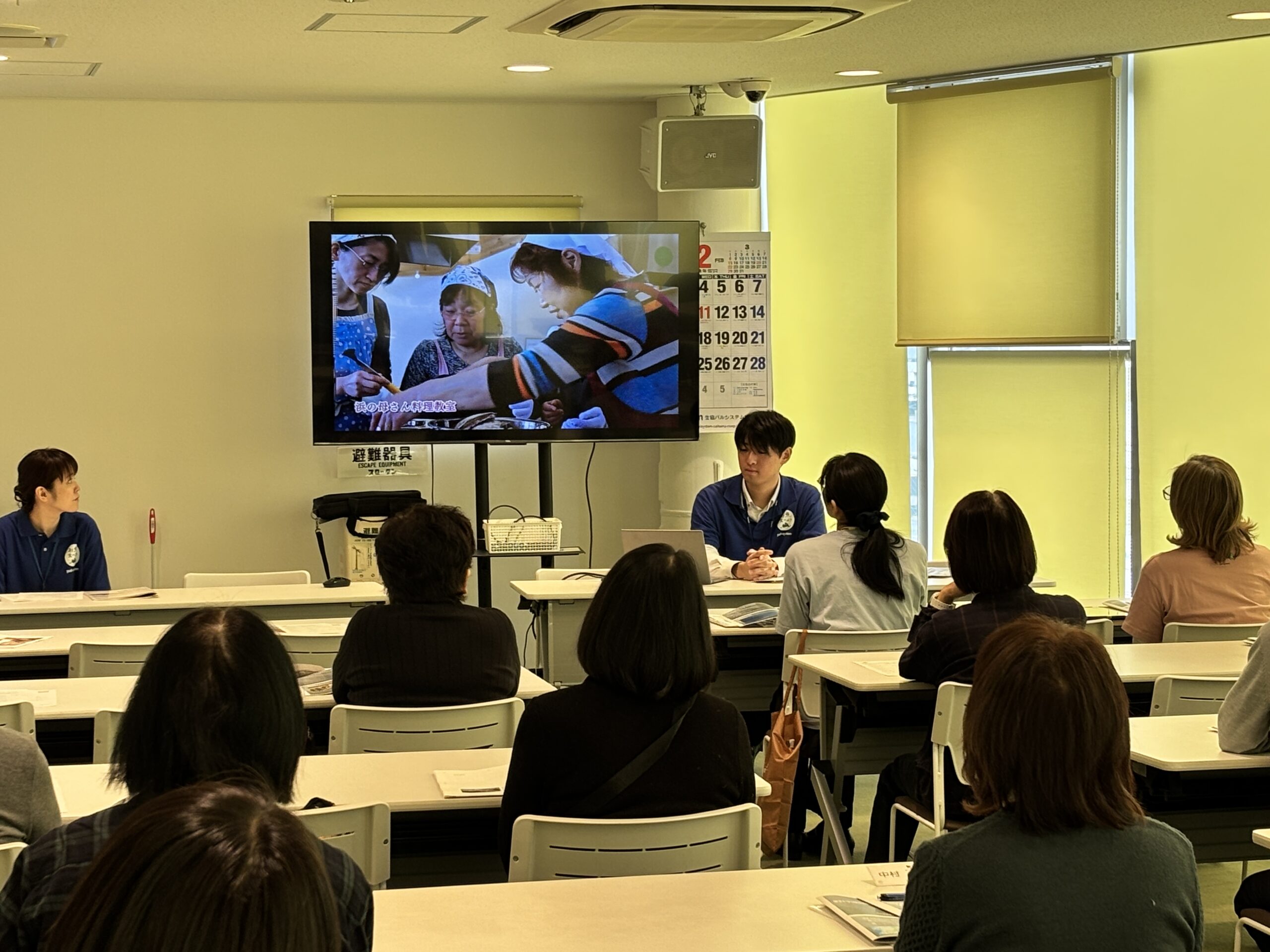 前半は、野付に関する学習会を行いました。野付漁協における植樹活動や交流活動の取り組みについてのムービーを交えながらお話いただきました。