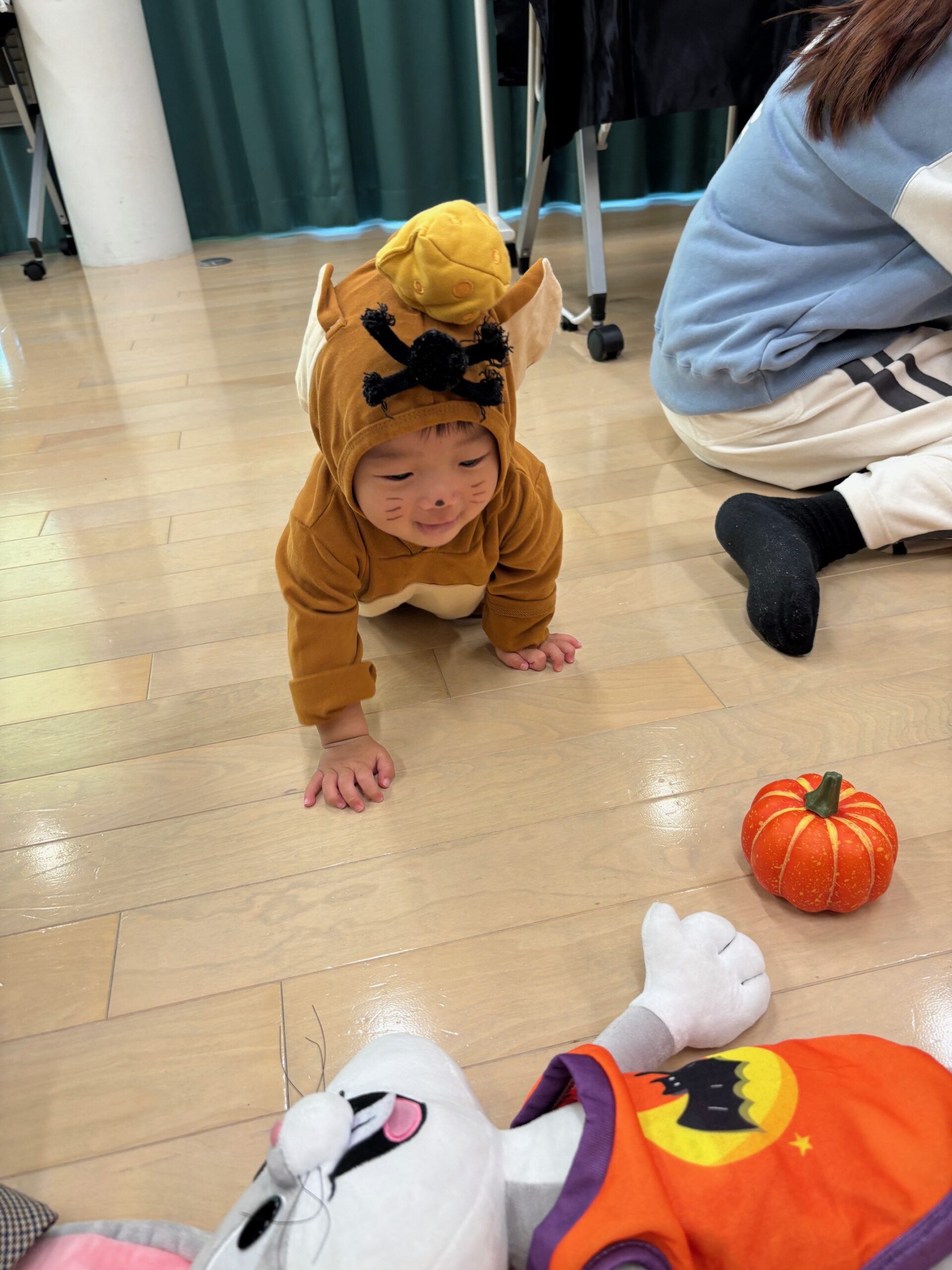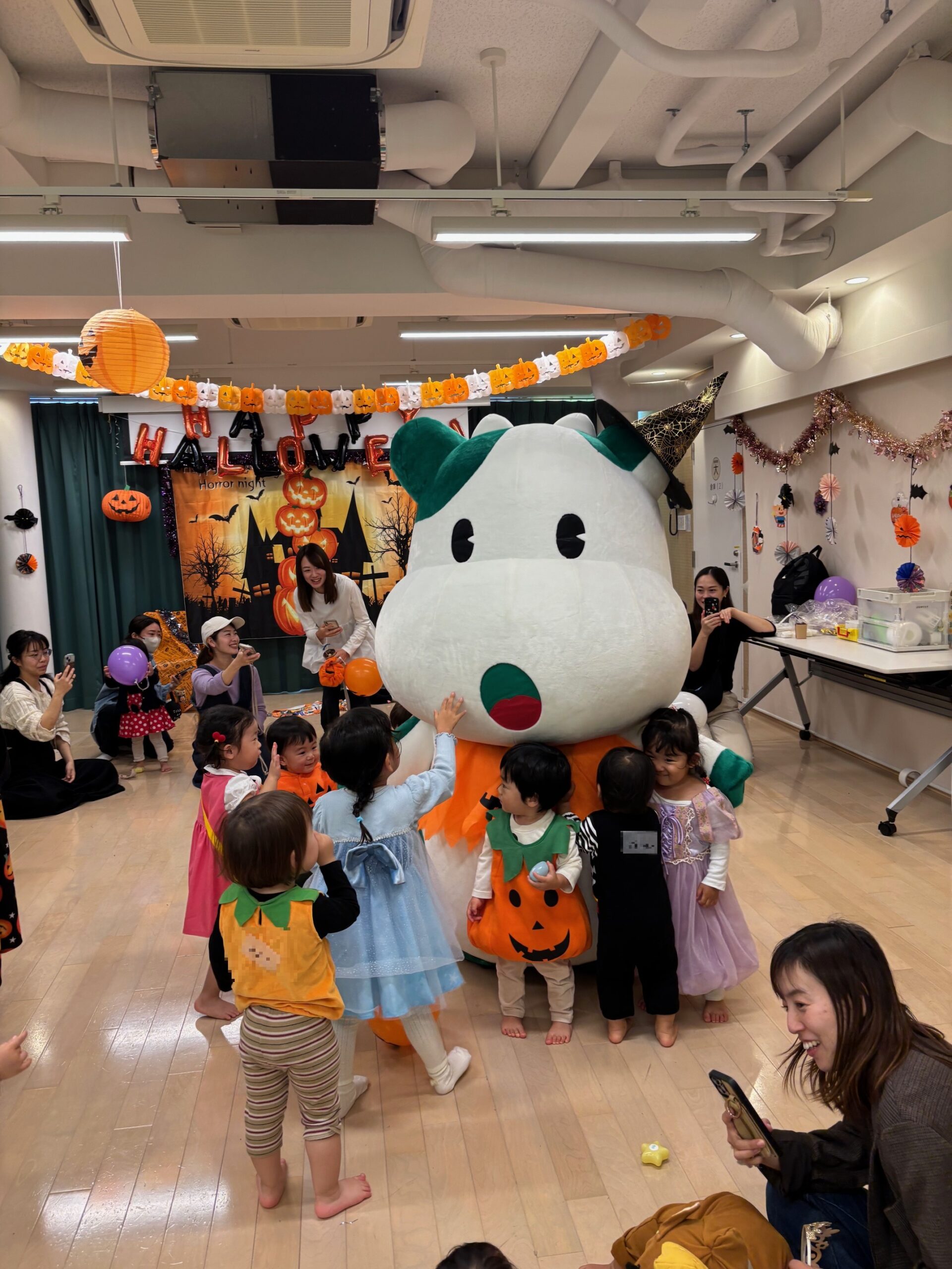 最後にみんなで写真を撮ったところでこんせんくんとはさよならをして、ハロウィンイベントもおしまいです。次回の親子ふれあいサロンは、親子ふれあい遊びの講師雲雀さんと秋のコラージュ作りをします。