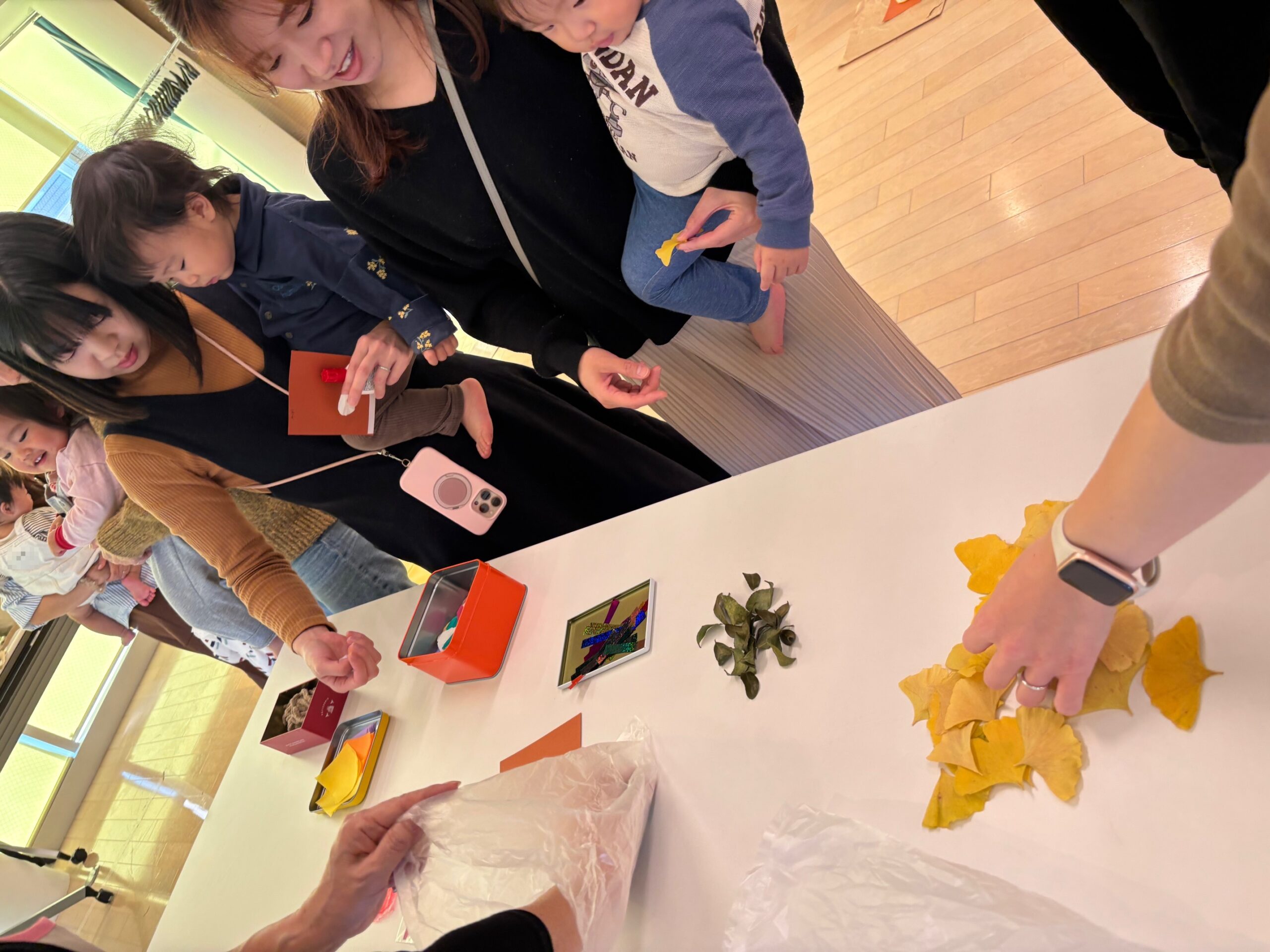 11月7日(金)の親子ふれあいサロンは親子ふれあい遊びの講師、雲雀さんと秋のコラージュ作りをして楽しみました。