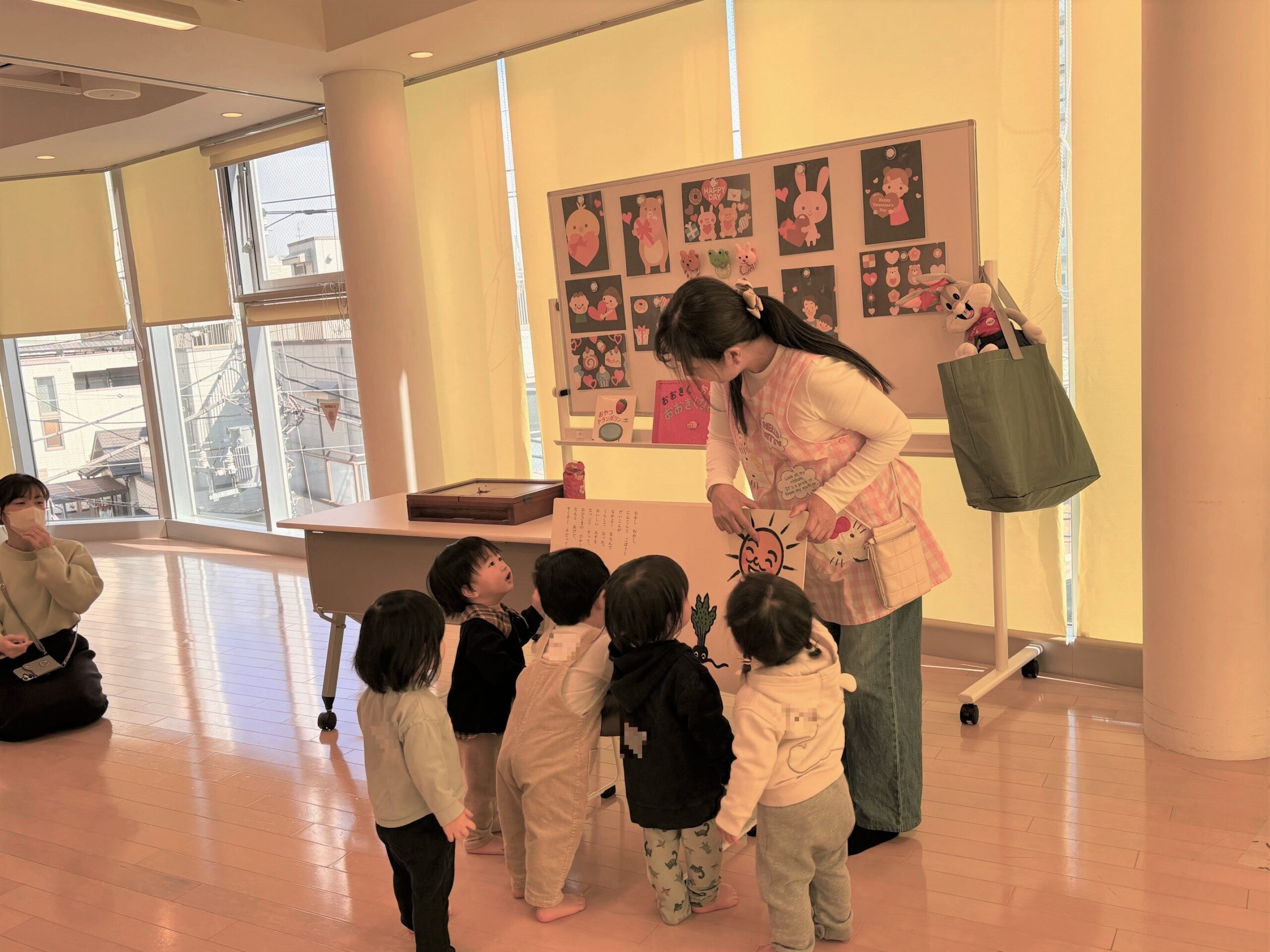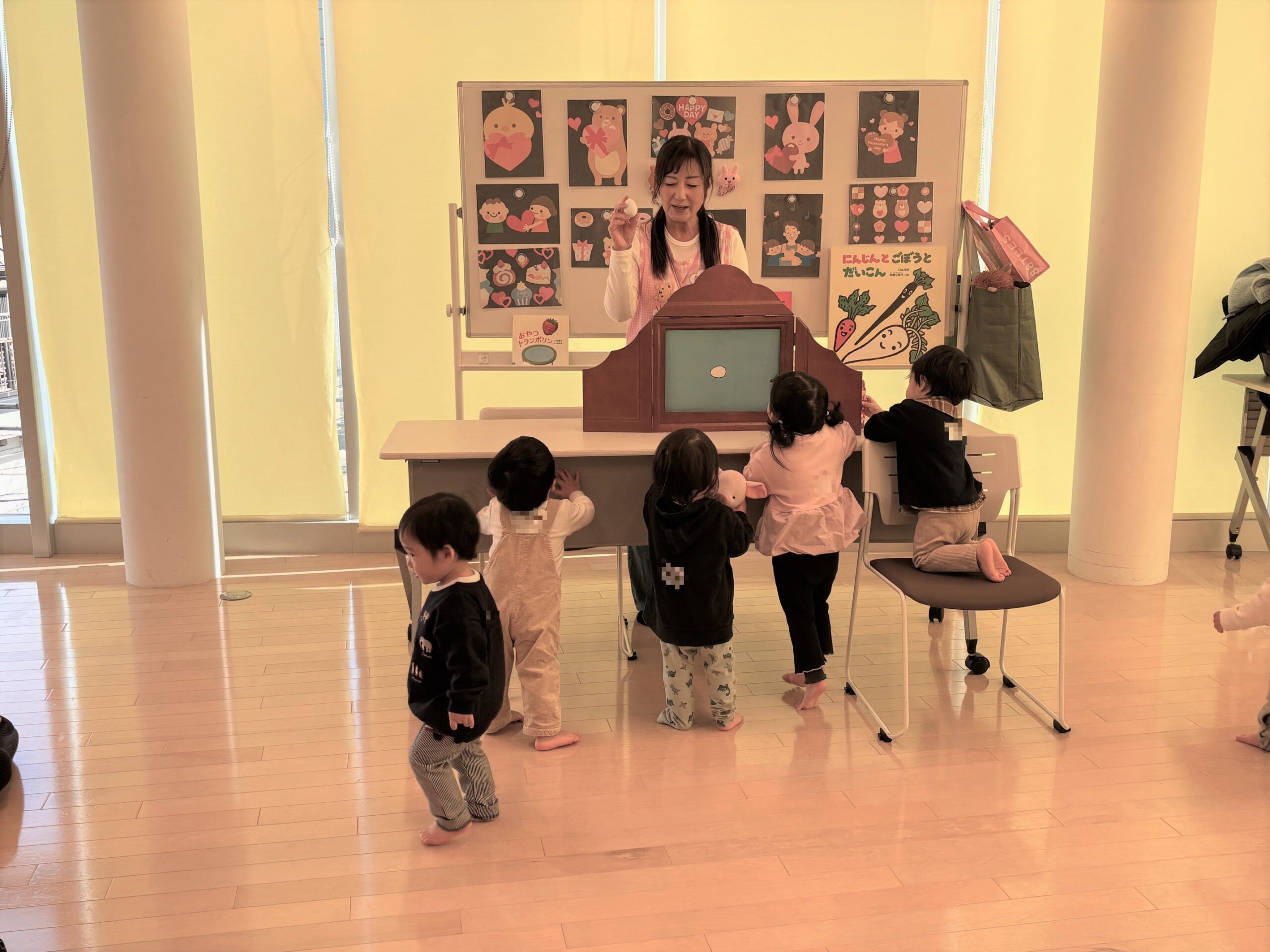2月6日(金)の親子ふれあいサロンは、親子ふれあい遊びの講師星野さんとバレンタインを楽しもうをテーマに遊びました。