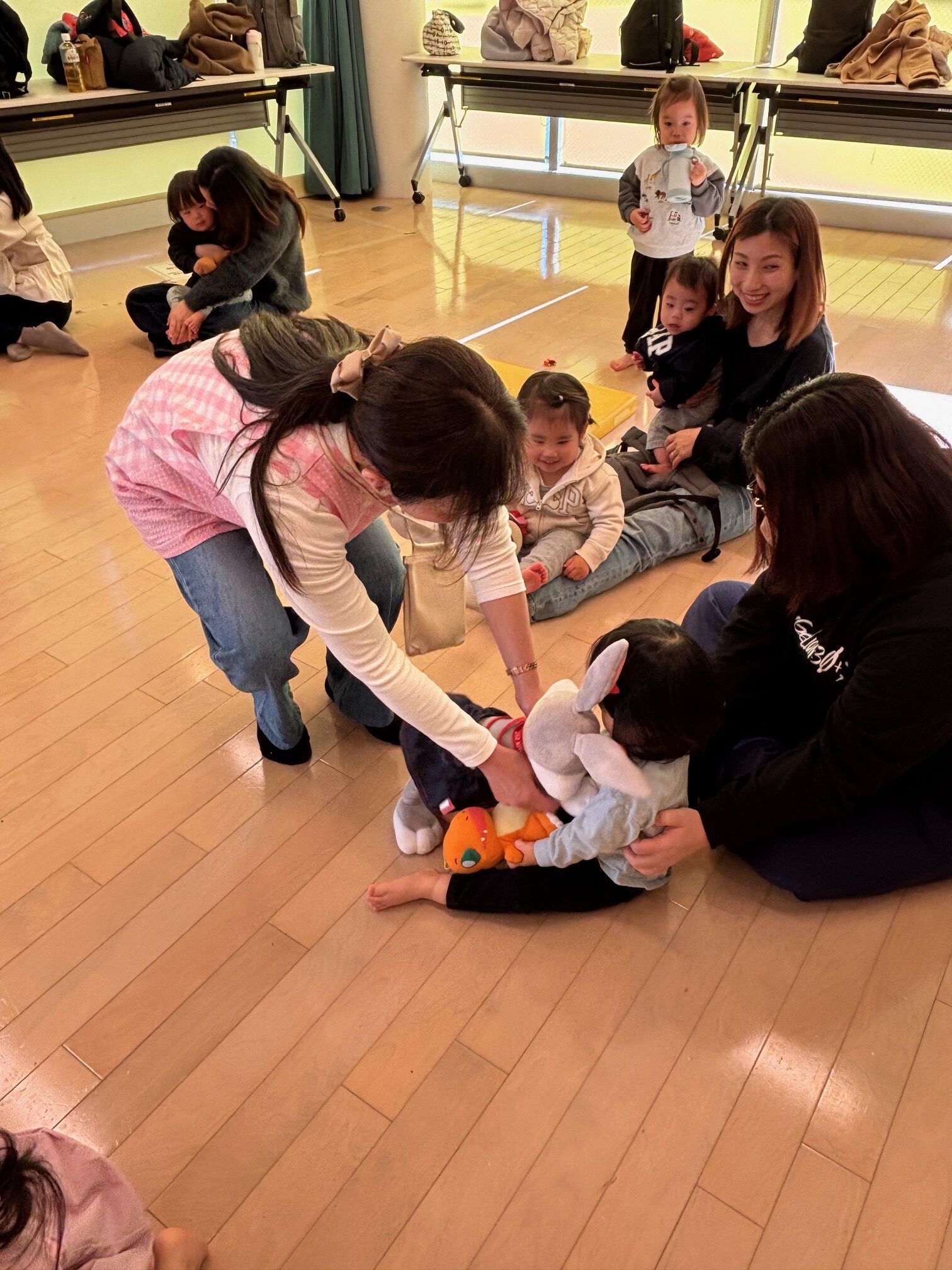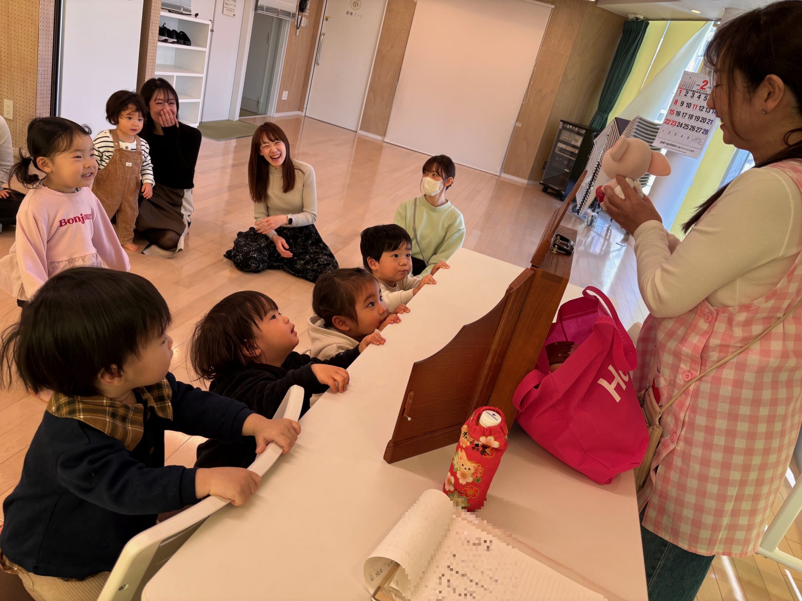 手遊びではママのお膝の上でニコニコ笑顔♪星野さんとも、たくさん遊びました。