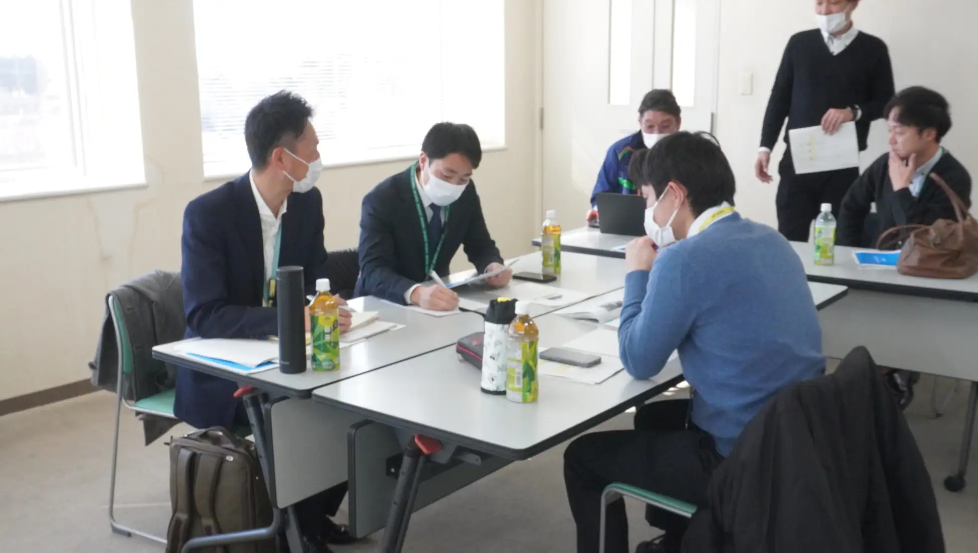 視察後は、それぞれの視点から異物混入を防ぐための効果的な呼びかけを検討しました。利用者に向けたリサイクル資材への異物混入防止のお願いや配送センターで資材を分別する倉庫担当者や利用者宅から回収する配送担当への注意喚起のため、さまざまなアイデアを出し合いました。