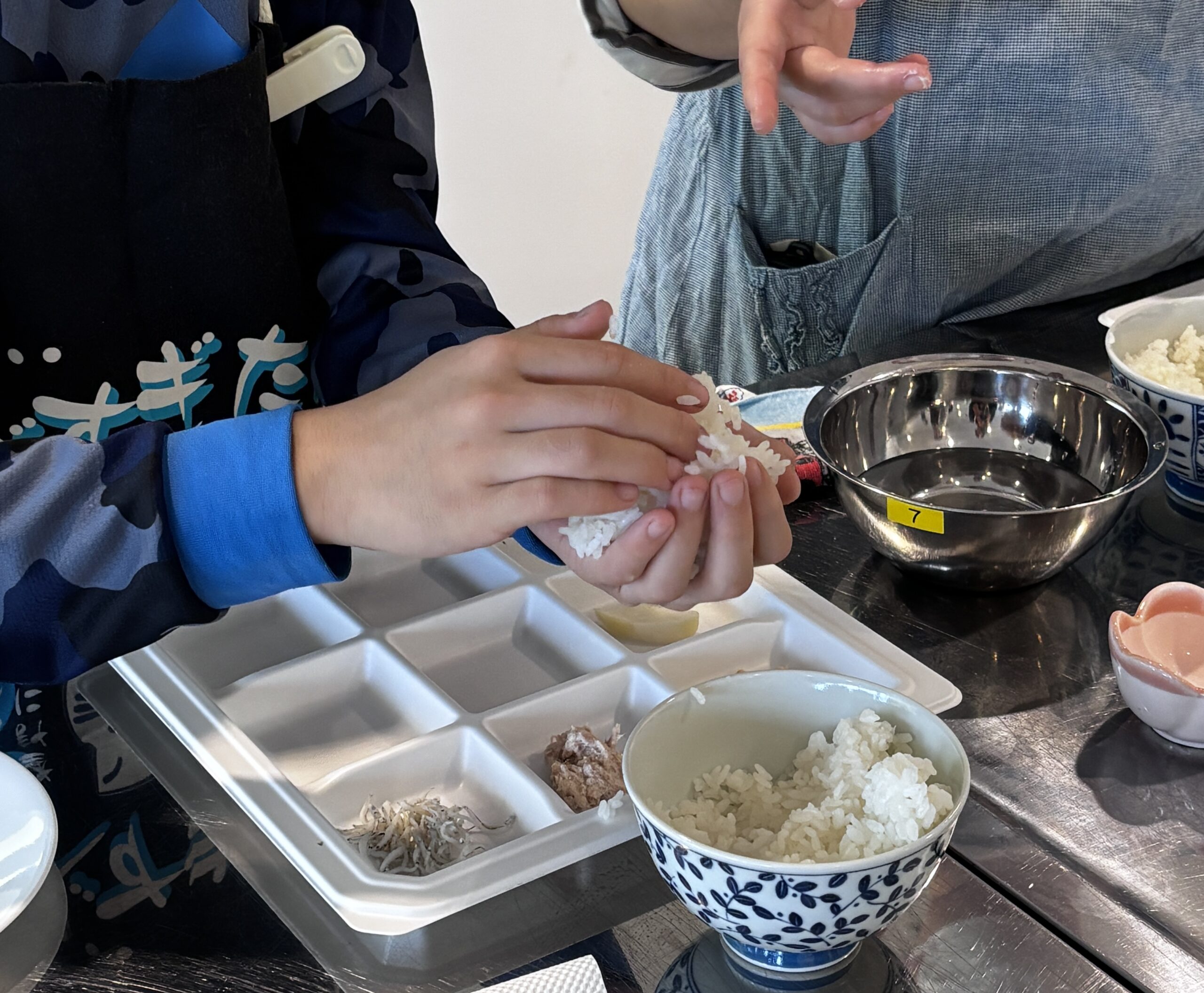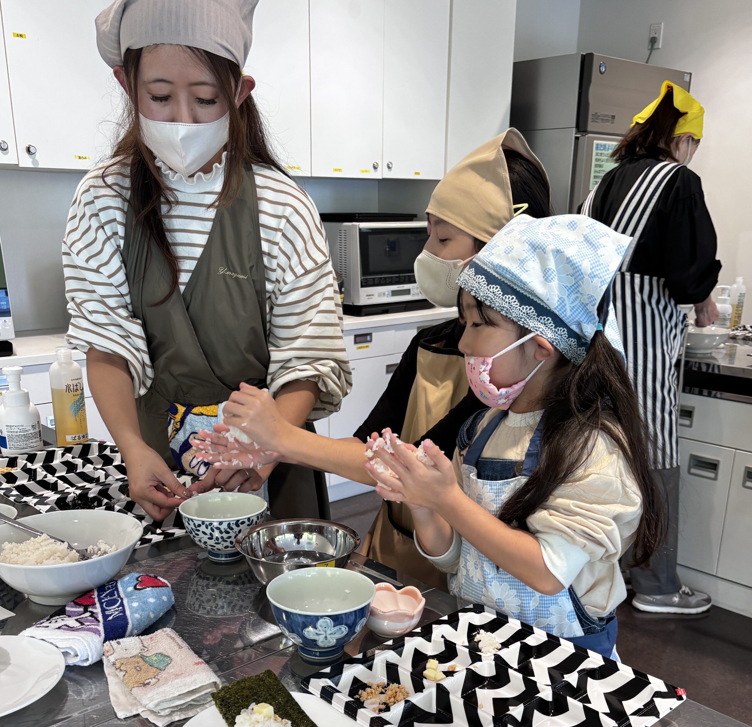 「普段はラップで握るので、素手は初めて」「久しぶり」という声が多く聞かれました。実際に素手でおにぎりを握るのは思ったよりも難しく、手にたくさんのお米が付いてしまったり、「お・に・ぎ・り」と4回だけで握るため崩れてしまったりと、苦戦しながらも楽しそうに挑戦していました。